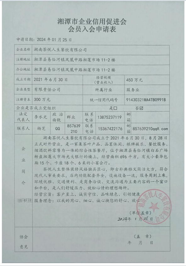 湖南茶悅?cè)松惋嬘邢薰?024年度信用報告 2024 已發(fā)布