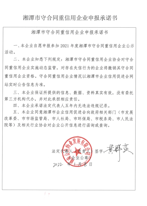 本企業(yè)根據(jù)《湘潭市守合同重信用企業(yè)申報規(guī)定》等編制 2021 年度企業(yè)信用報告書,并保證本報告書內(nèi)容真實、準確、完整。