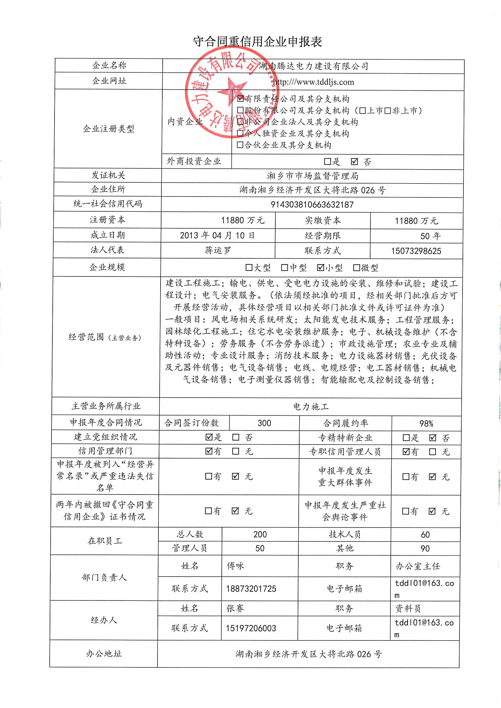 本企業(yè)根據(jù)《湘潭市守合同重信用企業(yè)申報規(guī)定》等編制 2024 年度企業(yè)信用報告書,并保證本報告書內(nèi)容真實、準確、完整。